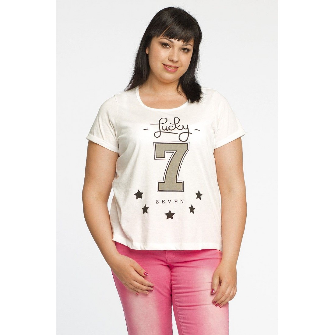 Топ из коллекции Junarose. Модель сделана из хлопкового, мягкого трикотажа. Имеет круглый вырез, закатанные рукава и принт спереди.