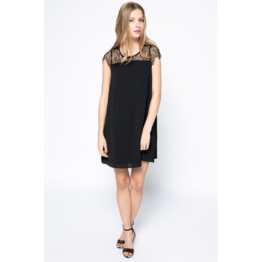 Платье из коллекции Vila. Прямая модель выполнена из материала с декоративными вставками.